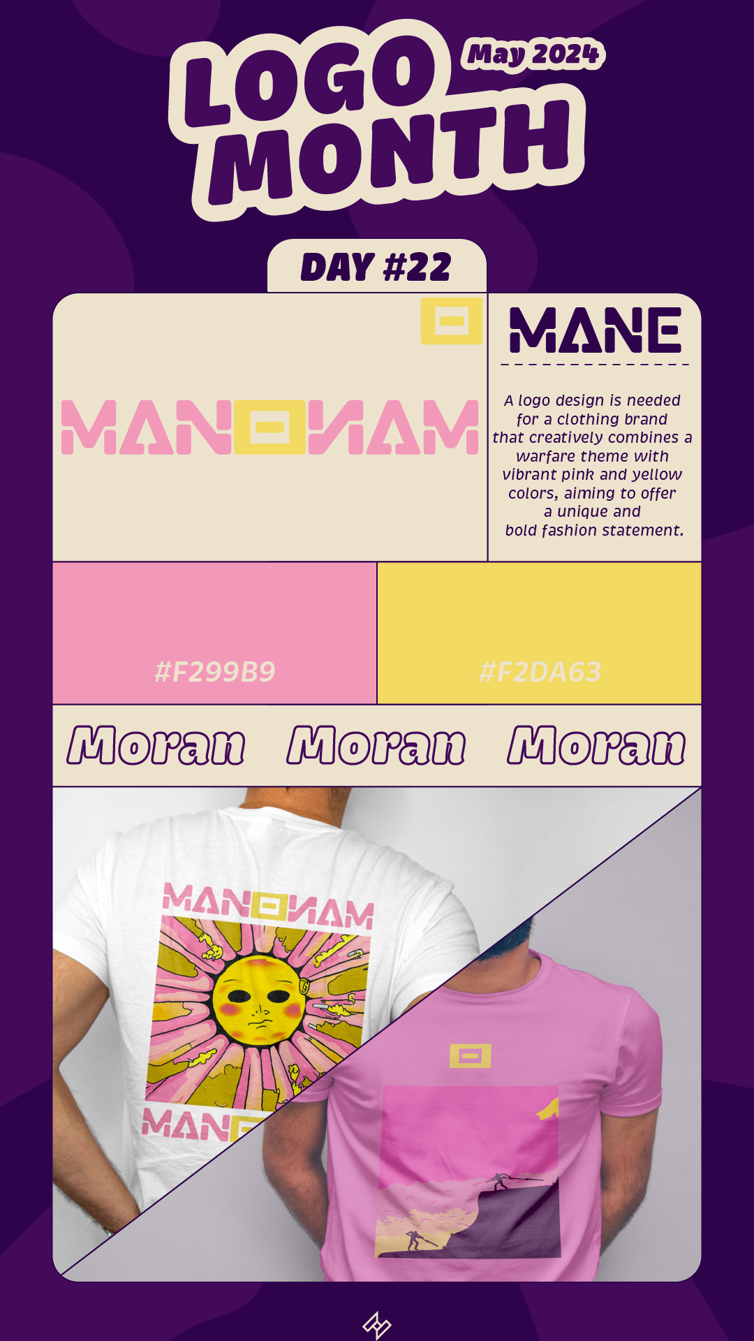 MANE est une identité visuelle conçue pour une marque de vêtements qui réinvente les codes du militaire avec une approche artistique et colorée. Ce logo traduit une vision audacieuse et disruptive, alliant symboles de guerre et esthétisme vibrant, créant ainsi un style unique et affirmé.