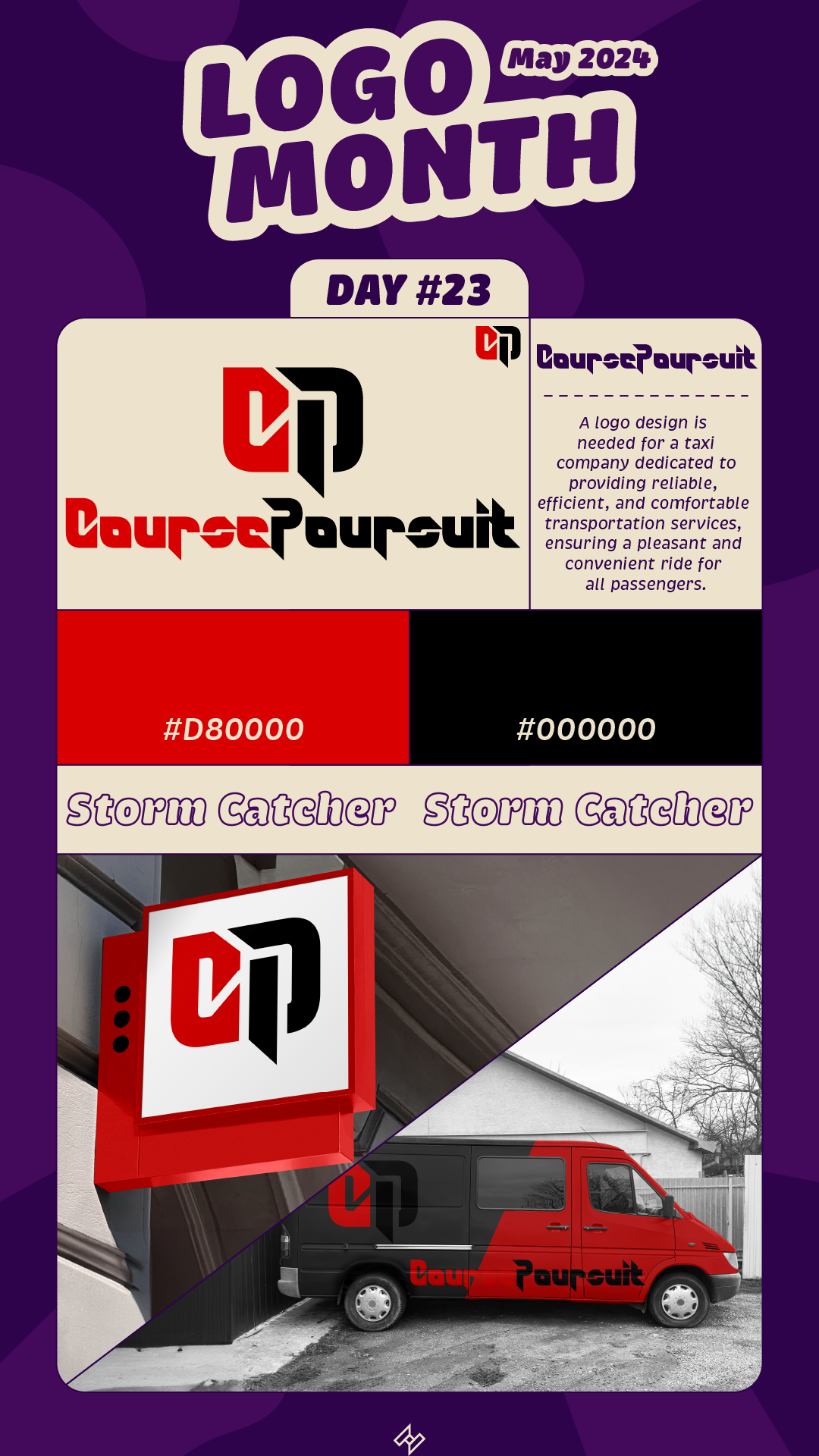 CoursePoursuit est une identité visuelle conçue pour une entreprise de taxis et de transport axée sur l’efficacité, la fiabilité et le confort. Ce logo traduit une image moderne et percutante, mettant en avant la vitesse et la fluidité des déplacements qu’offre la marque.